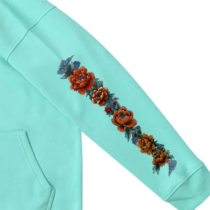 Nekomata-An’s iconic Peony Tattoo artwork is printed in two different designs on each sleeve.