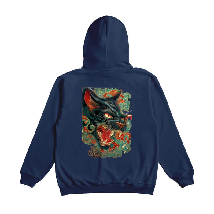 The front features a subtle Nekomata-An brand logo embroidery, while the back is highlighted by a bold and powerful Black Cat graphic that leaves a strong impression.