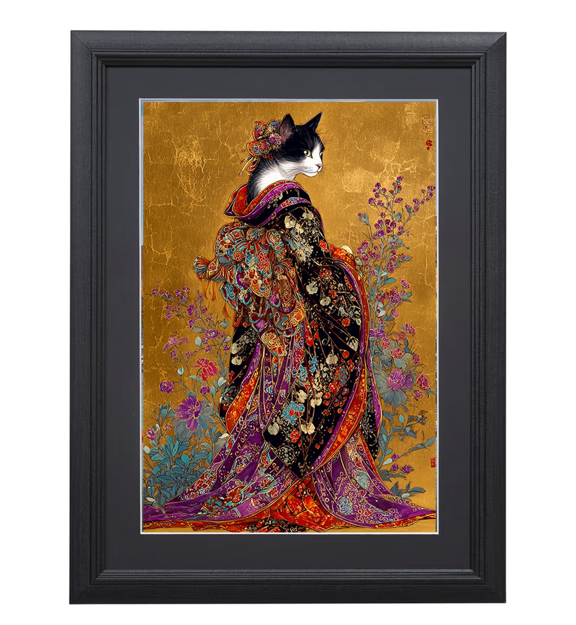 本作品は、猫又庵アートを雲龍紙に印刷、A4サイズのマット付き・額装済み仕様。