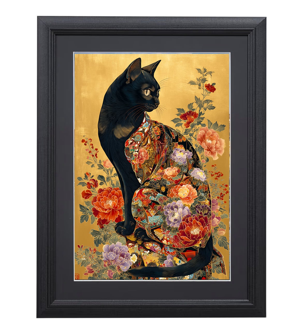 本作品は、猫又庵アートを雲龍紙に印刷、A4サイズのマット付き・額装済み仕様。