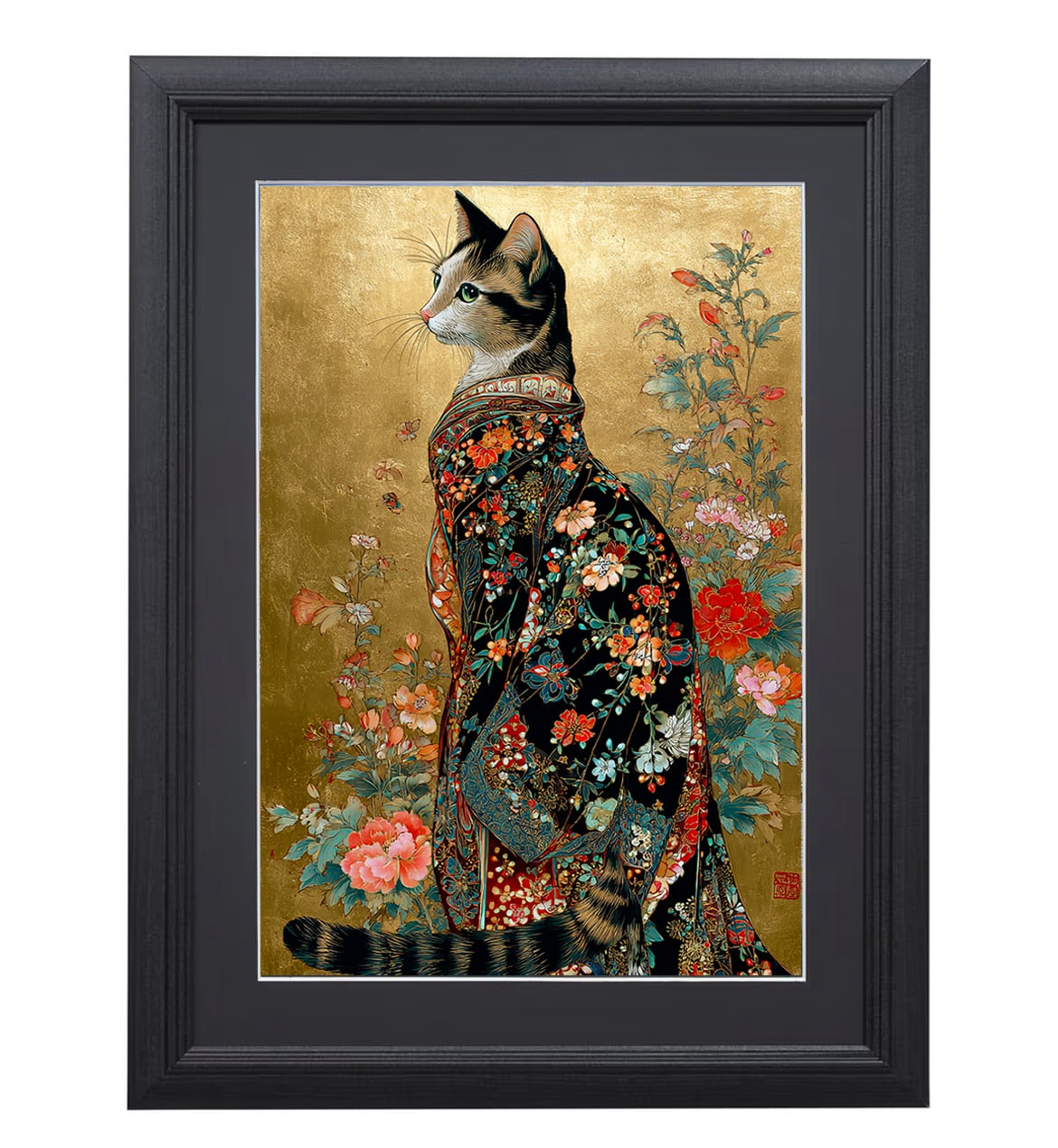 本作品は、猫又庵アートを雲龍紙に印刷、A4サイズのマット付き・額装済み仕様。